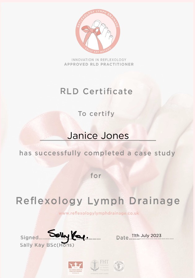 Janice Jones MFHT (Member of The Federation of Holistic Therapists) Janice Jones AofR (Association of Reflexologists member)